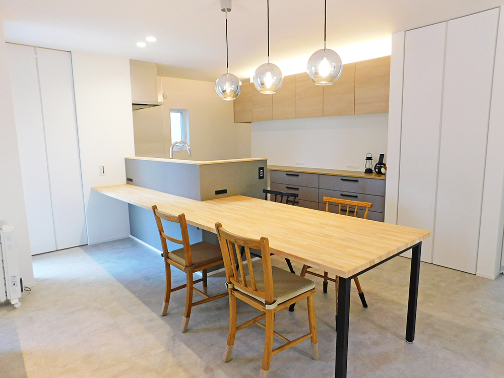 ・配膳や片付けがスムーズにできて家事の時短にもつながる、横並びのダイニングとキッチン