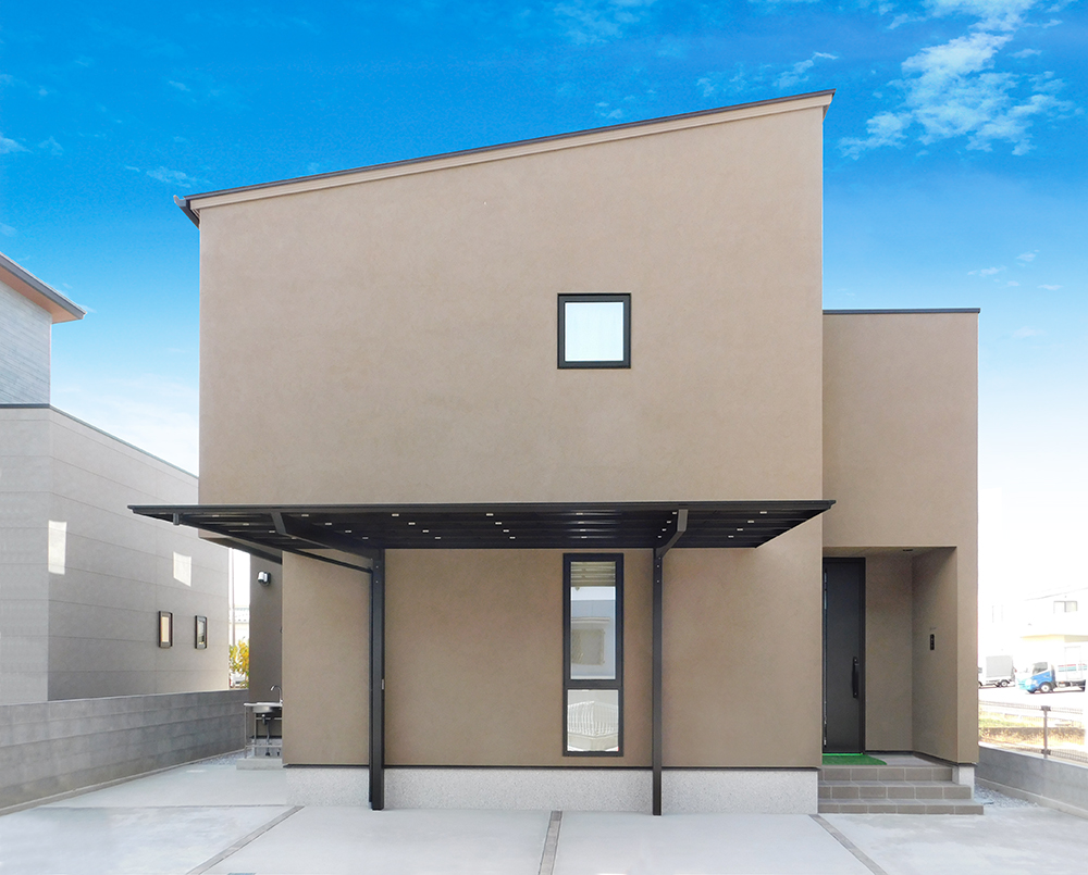 ・高い断熱性のダブル断熱工法を採用したオシャレな塗り壁の外観