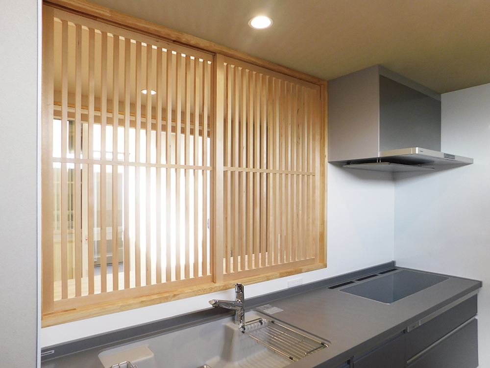·格子戸を開けると中庭が見える和テイストのキッチン。