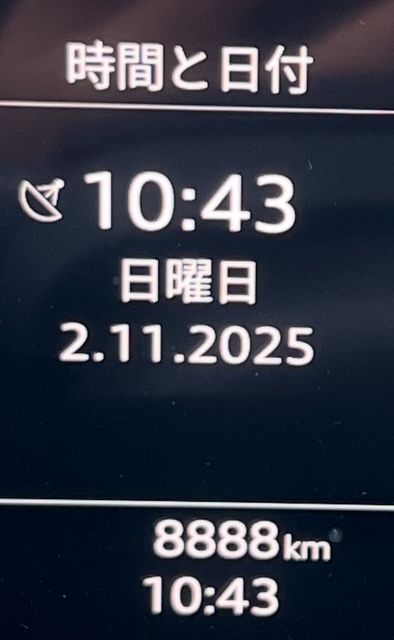 通勤途中・・・車の走行距離が・・・『8888』なんか幸せな気持ちになりました(笑)