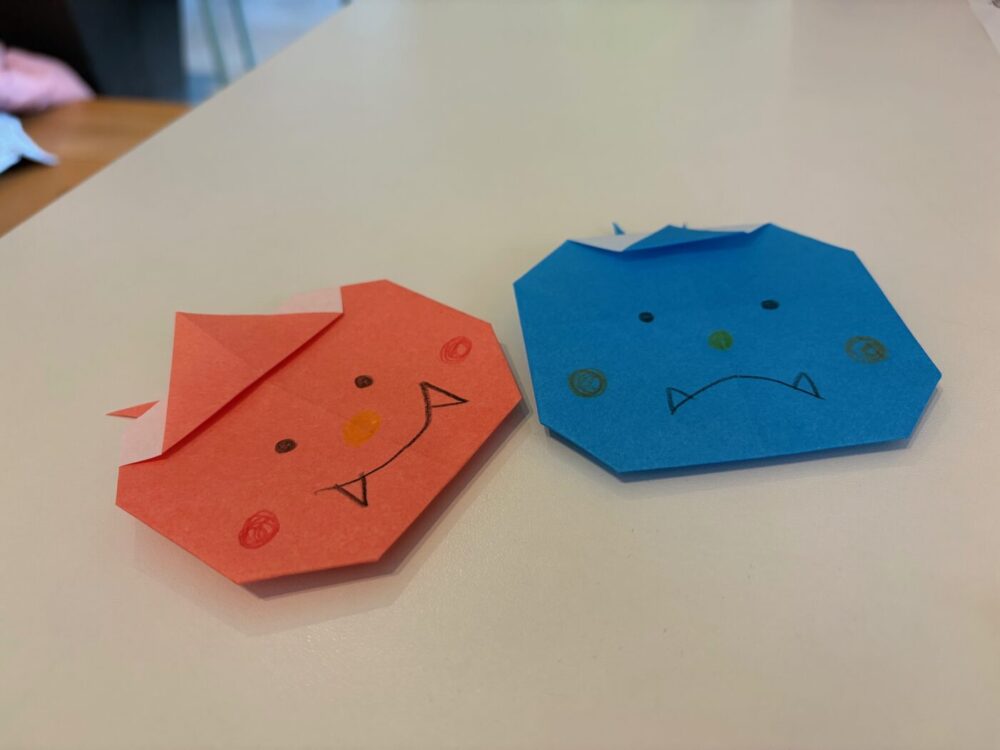 ↑ 先日子供たちと折り紙で作った鬼です。